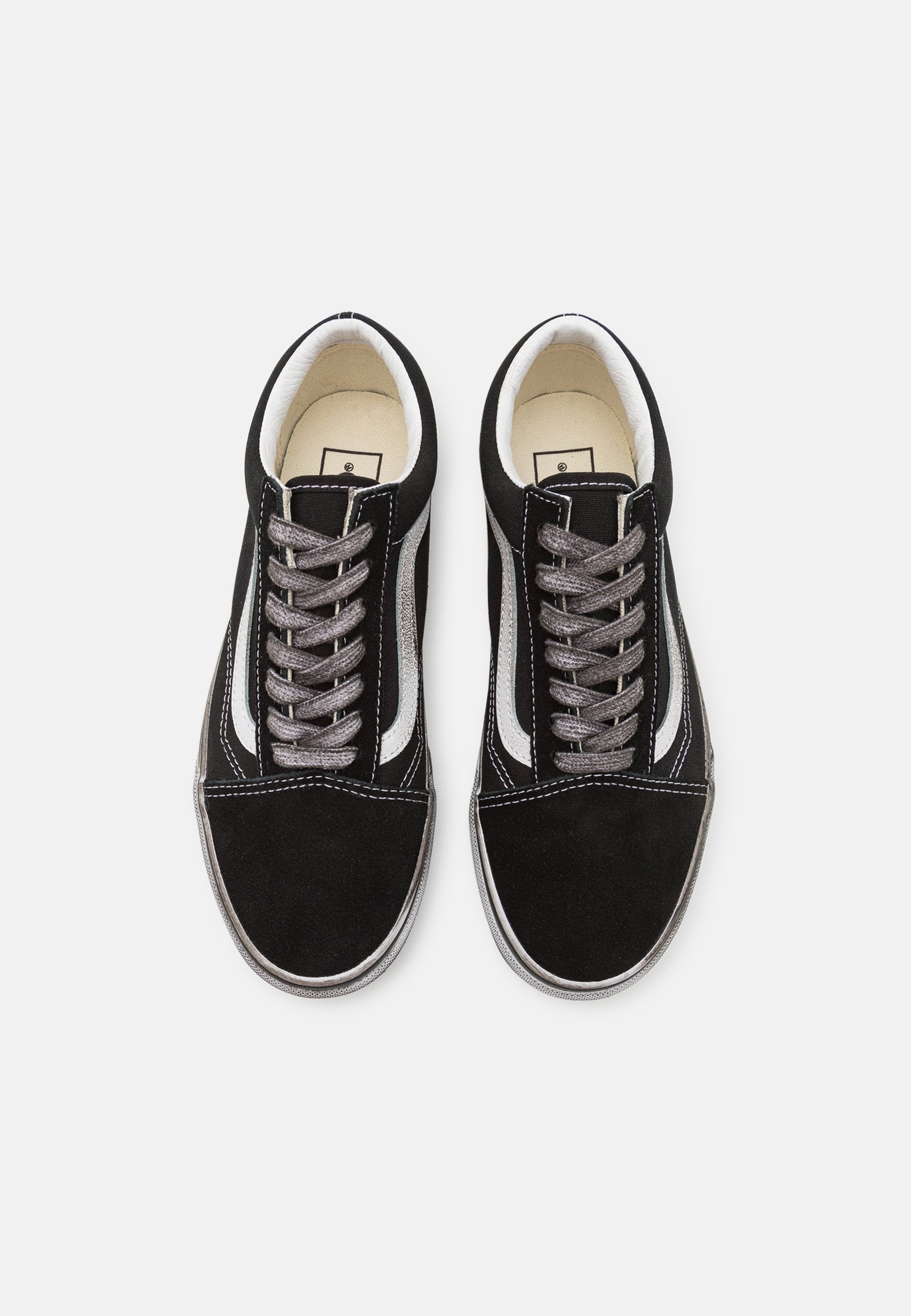 Caratterizzate da una robusta tomaia in pelle scamosciata e tela con effetto consumato, le Stressed Old Skool rendono omaggio alla tradizione Vans offrendo un modello low-top stringato sempre iconico. Presentano punta rinforzata, collo imbottito di supporto e l'originale suola waffle in gomma.